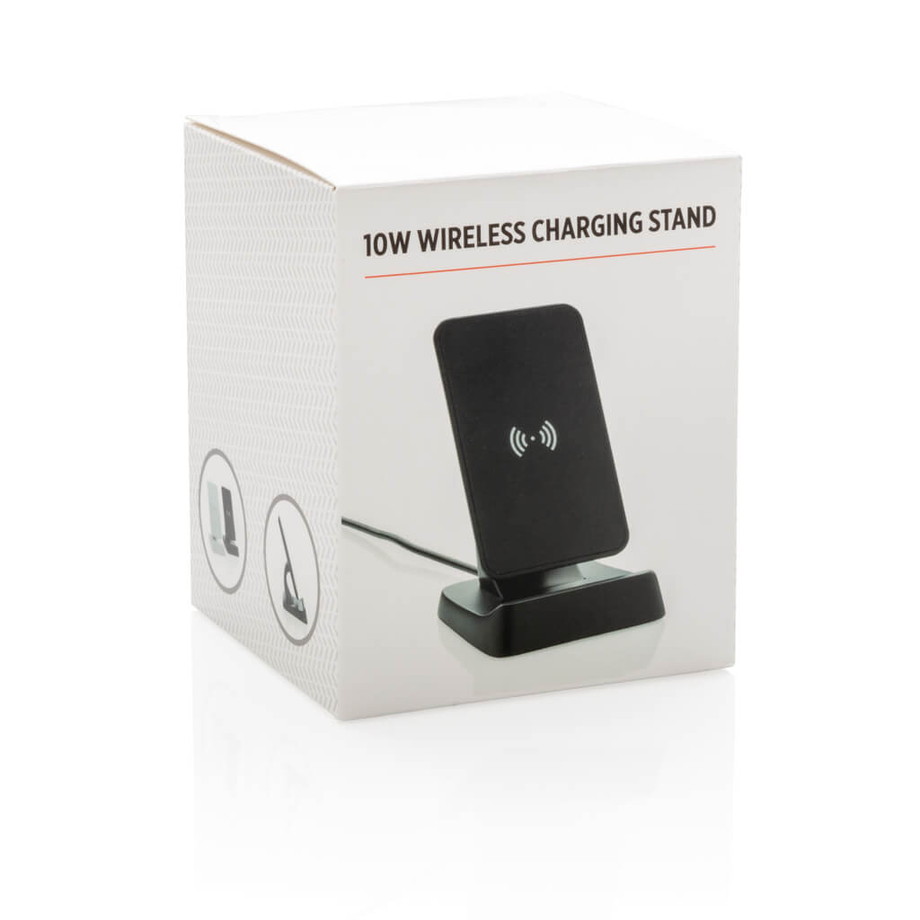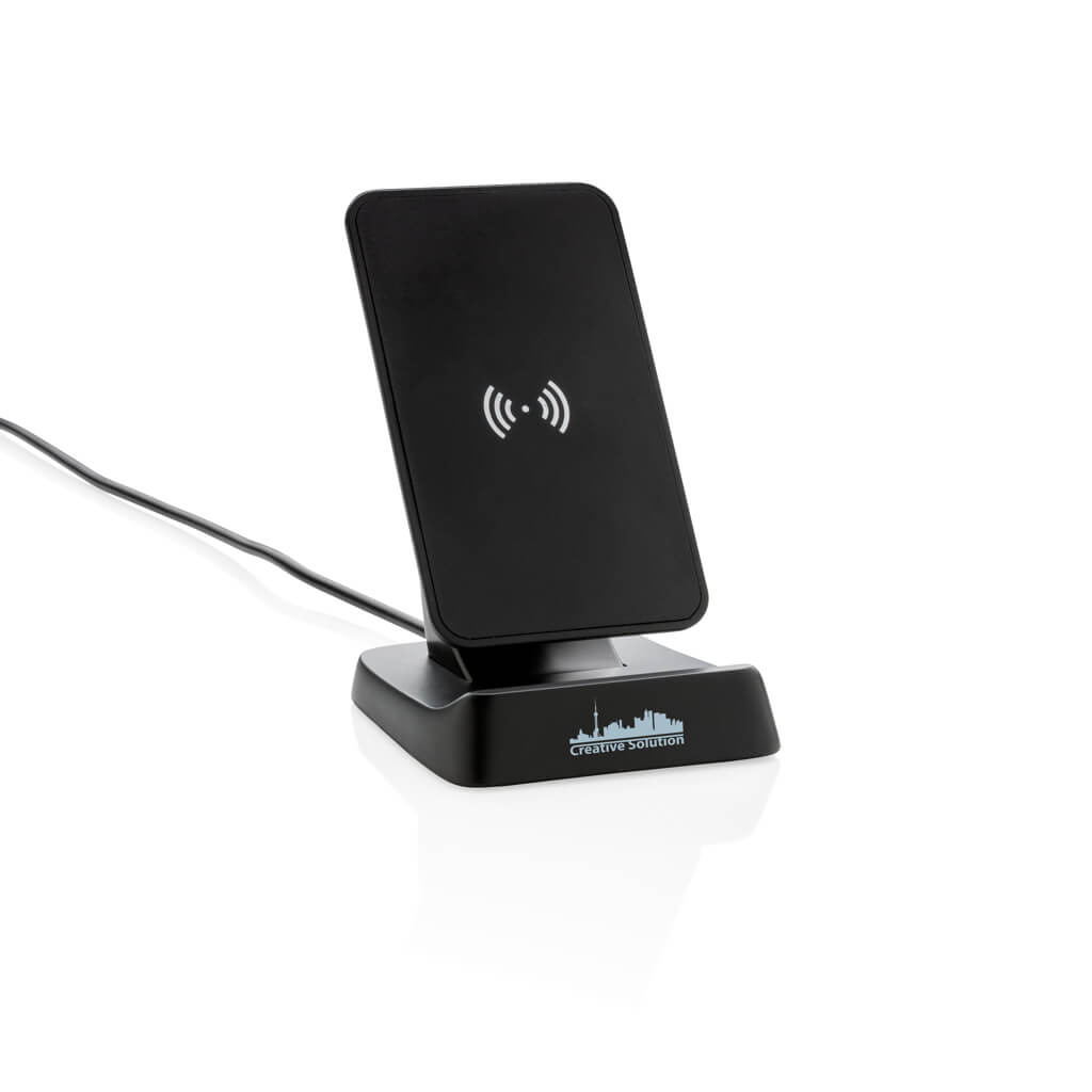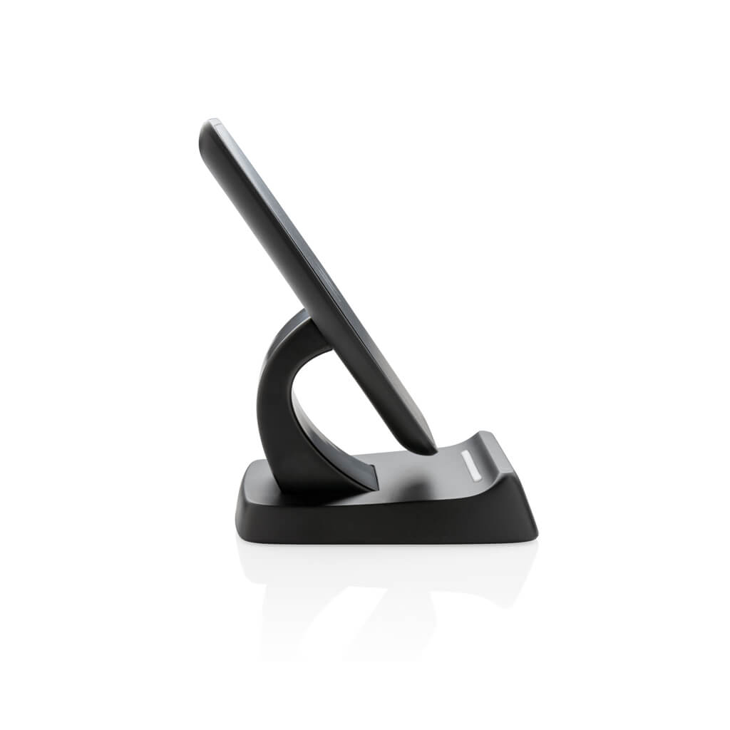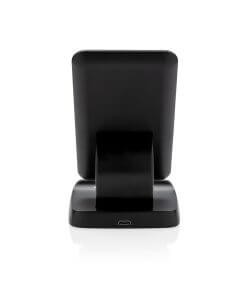 Fast charging 10W stand that charges with double speed of most wireless chargers in the market. High quality ABS material and aluminium middle part. The stand has two internal charging coils offering an optimal charging surface for all sized mobile phones and also supports horizontal placement in the holder. Includes 150 cm micro USB cable. Compatible with all QI enabled devices like android latest generation, iPhone 8 and up. Input: 5V/2A Output: 5/1A; Quick charge Input: 9V 1.67A. Fast charge Output: 9V 1.1A.