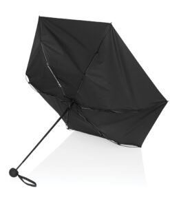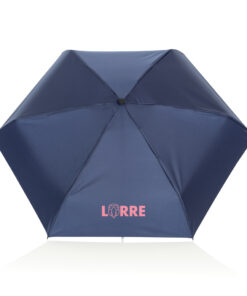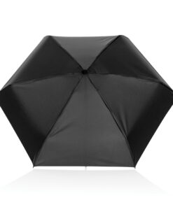 This Aware™ RPET super mini manual umbrella features five sections, allowing it to become ultra-compact while extending for full coverage. Its ultra slim size is easy to put into any bag or pocket Made of 100% rPET 190T pongee with AWARE™ tracer, it ensures genuine use of recycled materials. The steel shaft and frame, combined with 8 fibreglass ribs in a two-section design, provide durability and wind resistance. It has a manual open and close system and a PP handle with a PU coating for a comfortable grip. The umbrella includes a digital product passport. It is PVC-free and packed individually in a polybag with a PU batch number.