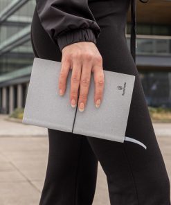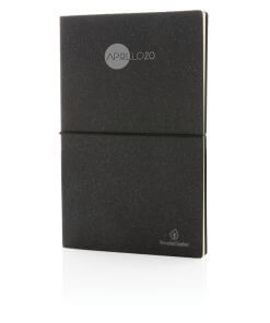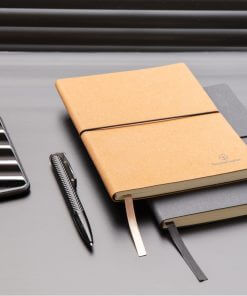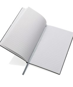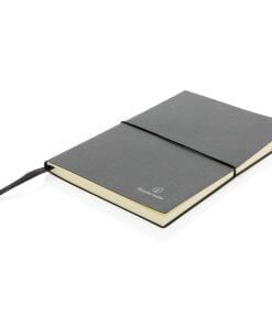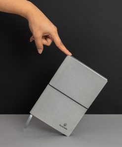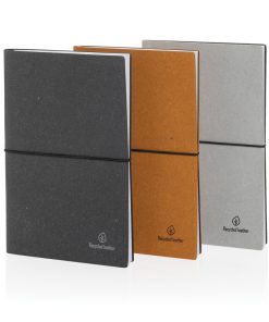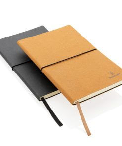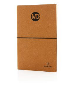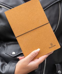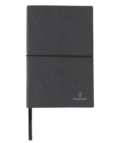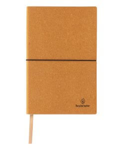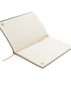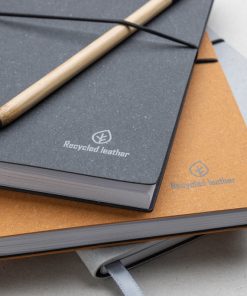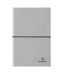 Be environmentally conscious without sacrificing on style with this great looking notebook made with recycled bonded leather. The cover has a pleasant texture and an earthy natural look. 80 sheets/160 lined cream coloured 75 grams pages recycled paper make sure you can caption each thought that comes to mind.