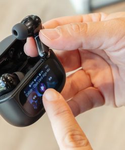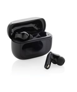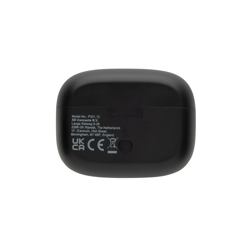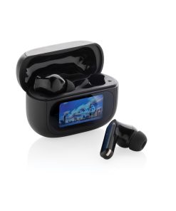 Commute, work or travel in silence with these ANC earbuds. The ANC function makes sure outside noise is reduced for optimal concentration. The charging case comes with an integrated TFT touch screen which offers many unique features: find your earbuds, adjust volume, select next song, answer calls and change language (select between 8 languages) and many more. The earbuds and charging case are made with RCS (Recycled Claim Standard) certified recycled ABS. Total recycled content: 43% based on total item weight. RCS certification ensures a completely certified supply chain of the recycled materials. The earbuds use BT 5.3 for automatic pairing without any hassle and a stable connection. The earbuds have a 30 mAh battery that allows a play time of up to 6 hours (with ANC) and can be re-charged in 1.5 hours in the charging case. ANC degree: 23 DB. Including 3 size eartips. IPX 4 waterproof. With ENC microphone for clear calls. Packed in FSC kraft box.
