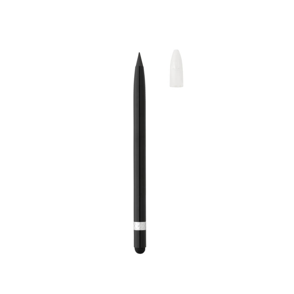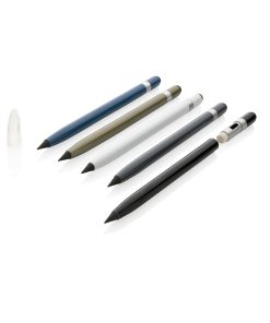This inkless pen with eraser replaces your traditional wooden pencil. It has a writing length of up to 20.000 metres using a graphite tip to produce a graphite line. It features a clean and modern look with the aluminum and on the top you will find an eraser.