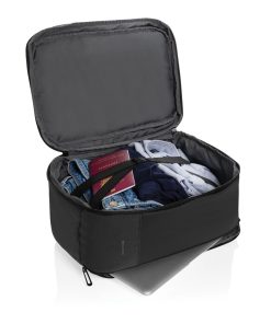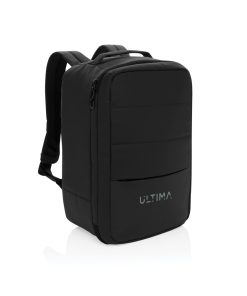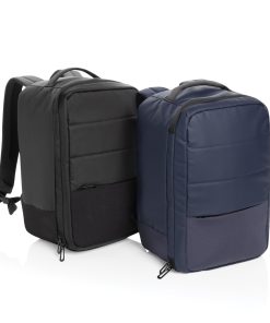 The Armond Aware™ RPET Free On Board Travel Pack is designed for the budget-conscious or short business traveller. Made from rPET with a PU water-resistant coating and backed with AWARE technology, this backpack features a 15 inch padded laptop compartment on the right side, perfect for MacBooks or smaller devices. The interior, lined with rPET, ensures your belongings stay organised, while the adjustable shoulder straps and sturdy webbing handle on top provide comfort and convenience. With a front zipper pocket and a mini trolley compartment complete with an elastic strap, this pack is perfect for business or weekend trips. Its compact size fits under any budget airline seat, so you won’t have to worry about extra baggage fees. Made with recycled polyester embedded with the AWARE™ tracer. 2% of proceeds of each product sold with AWARE™ will be donated to Water.org. PVC free.
