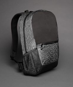 Increase your visibility in style with this backpack made with 100% recycled polyester and AWARE™ tracer. With AWARE™, the use of genuine recycled fabric materials and water reduction impact claims are guaranteed, by using the AWARE disruptive physical tracer and blockchain technology. Save water and use genuine recycled fabrics. The backpack features a modern allover reflective print, a main compartment with 15.6 inch laptop compartment, a front zipper pocket and 2 mesh pockets. Adjustable straps. PVC free. This bag saved 8 liters of water and is made of 16 plastic bottles.