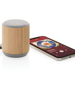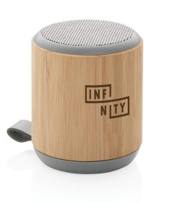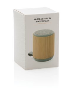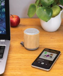 Bamboo 3W speaker with built-in 300 mAh lithium battery. With playing time of up to 3 hours on one single charge and operating distance of 10m using BT5.0. Made from natural bamboo and fabric.