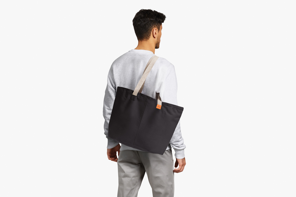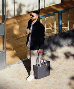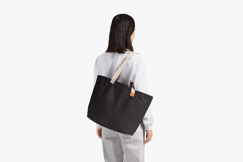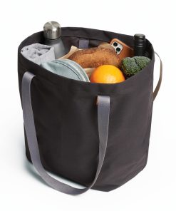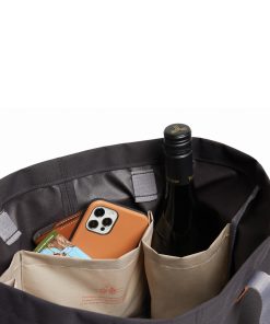 Sized for grocery runs, and with handy bottle sleeves inside, this versatile tote folds easily away and pops out at the shops. Stands upright when open. Folds away flat. 2 side sleeves keep bottles upright. Centre slip pocket for small essentials. Long shoulder straps. Lightweight and durable.