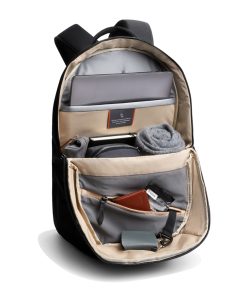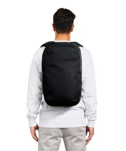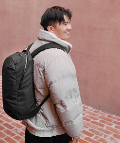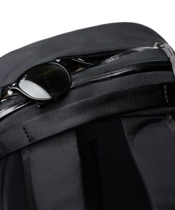 This clean, minimalist backpack is designed for life, for travel to and from but also in the office, with clever access and all-day comfort. Padded 16” laptop sleeve. Dropdown front panel access. Internal mesh zip pocket. Built-in key clip. Raised mesh sunglasses pocket. Contoured padded back panels and harness. Strong rolled-edge webbing grab handle.