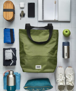 This spacious 16L bag is designed to handle anything your day brings. With an insulated inner compartment, it keeps cold or wet items separate—perfect for a beach trip, a picnic in the park, or even an overnight stay. The bag is made from fabric using 13 recycled plastic bottles and features reinforced stitching and an extra-wide, comfortable shoulder strap, making it strong enough for heavy groceries or a few bottles of wine. It’s 100% leakproof thanks to welded seams and a sealed zip, and it’s both sturdy and versatile. Available in four colours, it also pairs perfectly with a matching lunch bag. The interior includes a split compartment to separate cool or damp contents, and there’s an inner pocket for easy access to your essentials. A water-resistant reinforced base ensures durability on any surface, while the water-repellent insulated lining is easy to wipe clean. It even fits laptops up to 40 cm.