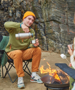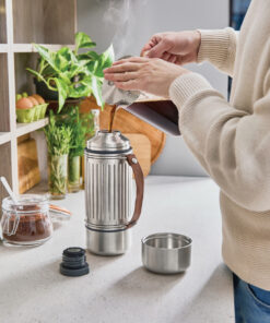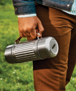 This 1L vacuum insulated stainless steel flask is built for every kind of adventure—whether you’re heading out on the trail, relaxing at the beach, or tackling the slopes. With its reinforced structure and durable design, it keeps drinks piping hot or ice cold for up to 24 hours. Completely leak proof, it features a steel cap lid with an easy pouring mechanism and two double-walled stainless steel cups for sharing. The wide-based cups offer extra stability on uneven ground, while a thick nylon strap makes it easy to carry or pour. A silicone gasket prevents drips when the cups are stored, and the flask is dishwasher-safe once the strap is removed.
