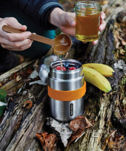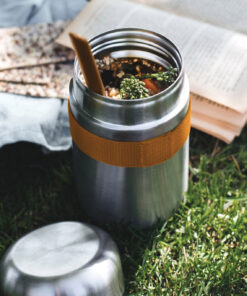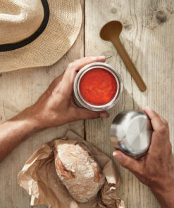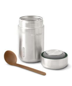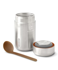 We have updated our best-selling Food Flask by adding a stainless-steel underside to the lid meaning that food has no contact with any plastic. The ladle spoon now includes sustainably sourced wood fibre and the product is now packaged in a gift box. The flask is vacuum sealed to keep food hot for up to 6hrs and cold for up to 8hrs. Handwash only – spoon is dishwasher safe