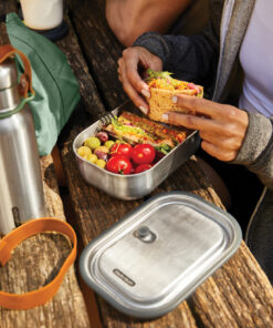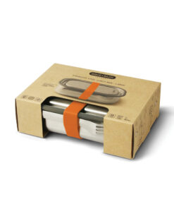 The first truly leak-proof stainless steel lunch box. It is a 3 in 1, multi-functional lunch box allowing you to transport your lunch, cook dishes in the oven, and even store pre-cooked meals in a freezer. Made from durable stainless steel, this design is perfect for carrying your culinary creations in style. It harks back to the vintage army or camping canteens of old, but has a modern, minimal feel that will age beautifully. The silicone valve creates a secure vacuum sealed closure, the slider divider allows you to separate the contents with ease, and the fork + holder are added for convenience. Dishwasher safe base+fork. Lid and strap are handwash only