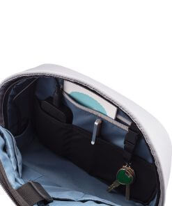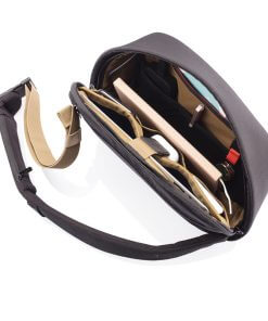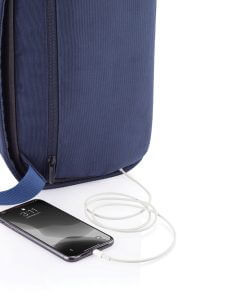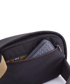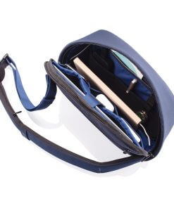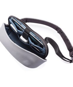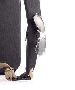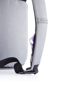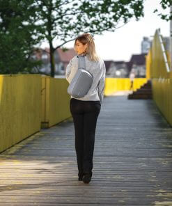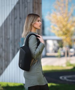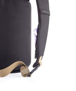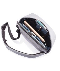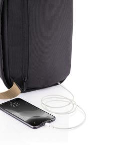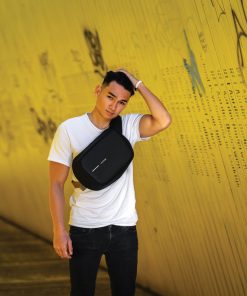 Safe, comfortable and smart, the Bobby Sling was designed for the city travellers. Feel protected with the famous Bobby anti-theft features like hidden zippers, no front access, RFID protected pocket and cut resistant material, also a 3 point safe buckle will make sure that your daily essentials are always along your body. Additional features like water-resistant material and integrated USB charging port makes this crossbody backpack the most convenient option for your everyday journey.Made from R-pet materials and AWARE™ tracer. With AWARE™, the use of genuine recycled fabric materials and water reduction impact claims are guaranteed, by using the AWARE disruptive physical tracer and blockchain technology. Each Bobby Sling saves 12 litres of water and reuses 20 plastic bottles. Registered design®