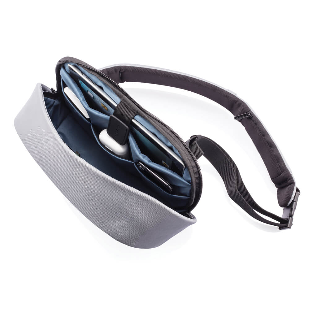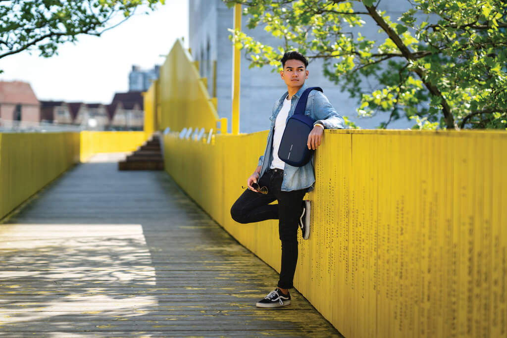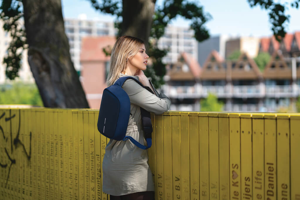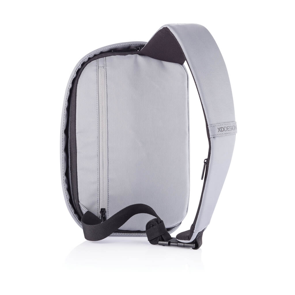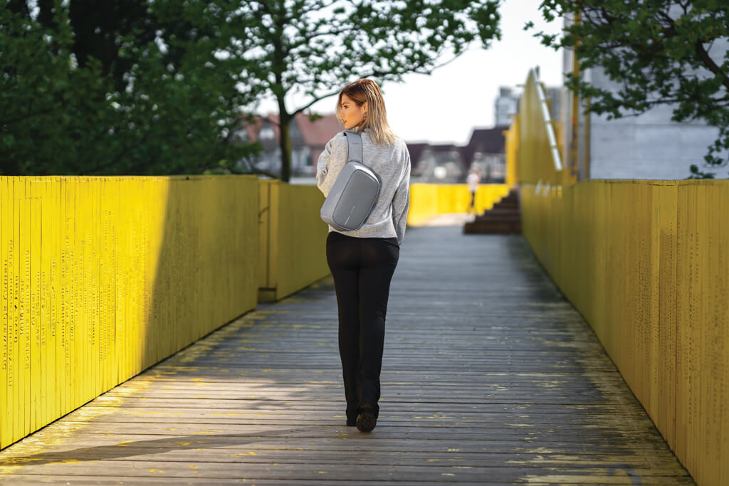Safe, comfortable and smart, the Bobby Sling was designed for the city travellers. Feel protected with the famous Bobby anti-theft features like hidden zippers, no front access, RFID protected pocket and cut resistant material, also a 3 point safe buckle will make sure that your daily essentials are always along your body. Additional features like water-resistant material and integrated USB charging port makes this crossbody backpack the most convenient option for your everyday journey.Made from R-pet materials and AWARE™ tracer. With AWARE™, the use of genuine recycled fabric materials and water reduction impact claims are guaranteed, by using the AWARE disruptive physical tracer and blockchain technology. Each Bobby Sling saves 12 litres of water and reuses 20 plastic bottles. Registered design®