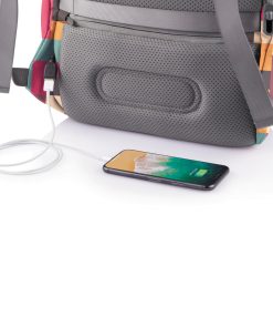 For university, school, work or your next trip, the Bobby Soft Backpack is ready! The iconic Bobby anti-theft design with hidden RFID protected pockets, no front access and hidden zippers is now complemented with a safe zipper puller on the main compartment. In the main compartment, you can easily organise your gear with a padded 15.6″ laptop compartment, notebook pocket, smart pockets and a keychain clip. The top of the backpack is expandable giving additional space. This backpack is also equipped with an integrated USB charging port and water repellent material. Made from R-pet materials and AWARE™ tracer. With AWARE™, the use of genuine recycled fabric materials and water reduction is guaranteed, by using the AWARE disruptive physical tracer and blockchain technology. Each Bobby Soft saves 23L of water and reuses 39 plastic bottles. Registered design®