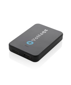 5.000 mAh pocket size powerbank with USB C input/output port and additional USB A port. The case is made from RCS certified recycled ABS plastic. RCS (Recycled Claim Standard) is a standard to verify the recycled content of a product throughout the whole supply chain. Total recycled content: 25 % based on total item weight. When fully charged the powerbank provides you with enough energy to re-charge your mobile phone up to two times. The powerbank contains a long lasting grade A 5.000 mAh lithium polymer battery. The power indicators will indicate the remaining energy level so you always know when to re-charge. Type-C Input 5V/2.4A; USB A: output 5V/2.4A, Type C output:5V/2A Item and accessories PVC free. Including RCS certified recycled TPE charging cable. Packed in FSC® mix packaging.