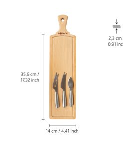 Treat your family and friends to the most delicious cheese boards with the Cheese Set Amigo from BOSKA – a B Corporation certified company. This complete set includes a beechwood serving board and three Copenhagen knives. The knives are lightweight, dishwasher-safe, and make the ideal cheese knives for any type of cheese. The board is only suitable for hand washing. Moreover, it comes with a 10 year guarantee.