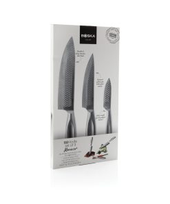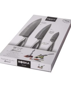 The Monaco+ kitchen knives set, from the brand BOSKA – a B Corporation certified company – is the ultimate set for every food lover. With the same features as the knives for professionals; high-quality stainless steel, extra sharp, and the slender handle for full control of the knife. Cooking Knife – for cutting everything! Sous Chef Knife – because what is a Chef without a Sous Chef. Paring Knife – for cutting vegetables and fruit. This set is handwash only, and backed by a lifetime guarantee.