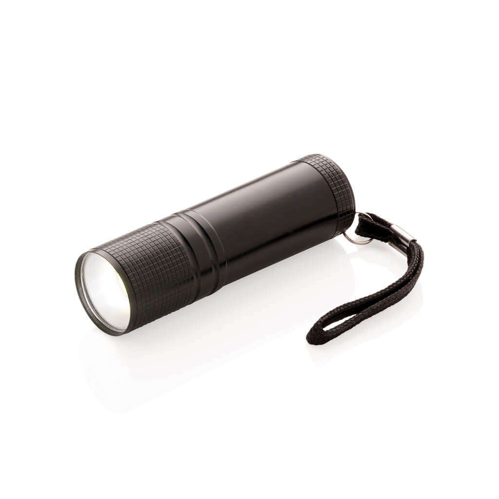 Super bright pocket sized COB torch. This COB torch is much brighter than regular LED torches and consumes less energy so it can be used up to 30% longer on the same battery. With strong aluminium body and carrying strap. Including 3x AAA batteries for direct use.