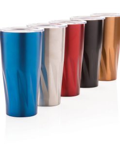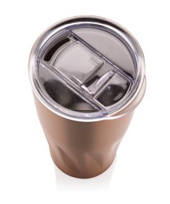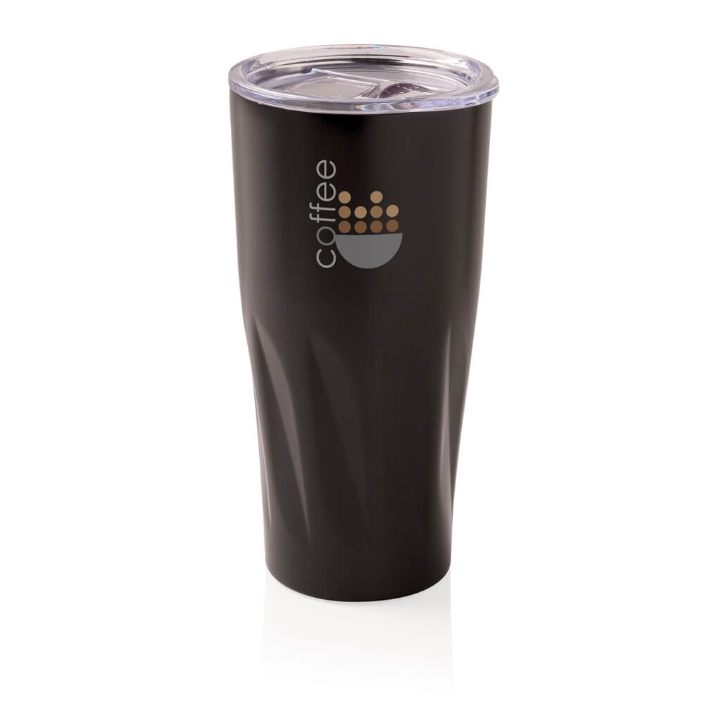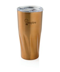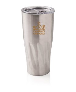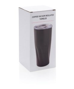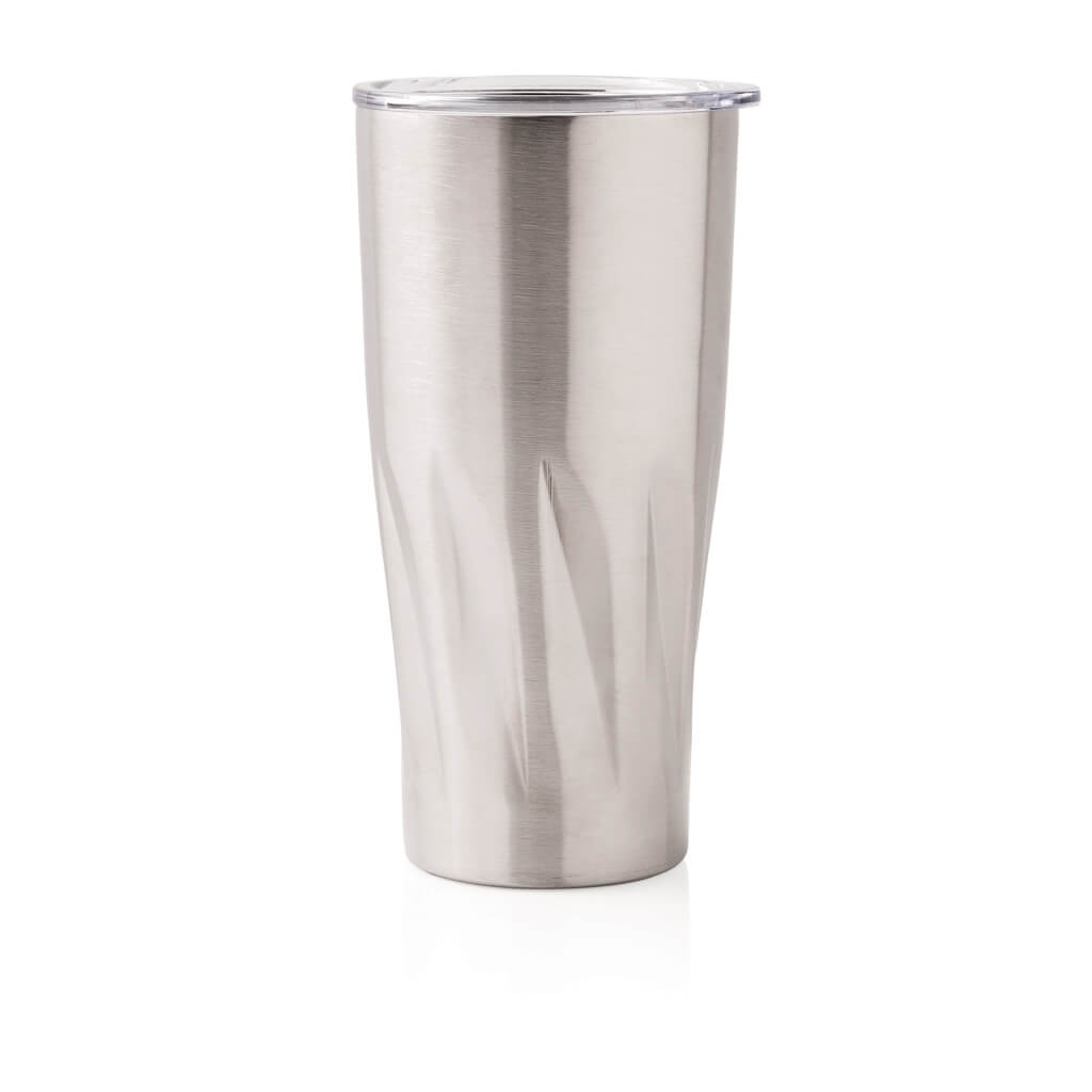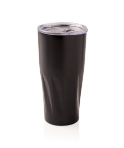 This 304 stainless steel tumbler has a double-wall vacuum construction with copper insulation which means it keeps drinks hot for 8 hours and cold for 24 hours. The construction prevents condensation on the outside of the tumbler. Easy sipping, push-on lid with slide closure. Content 500 ml. Spill proof & handwash only. Presented in an XD Collection gift box.