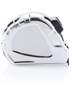 ABS chrome plated case with matt yellow metal tape, ECII and stamped. Black stop button and strap plus stainless steel clip.