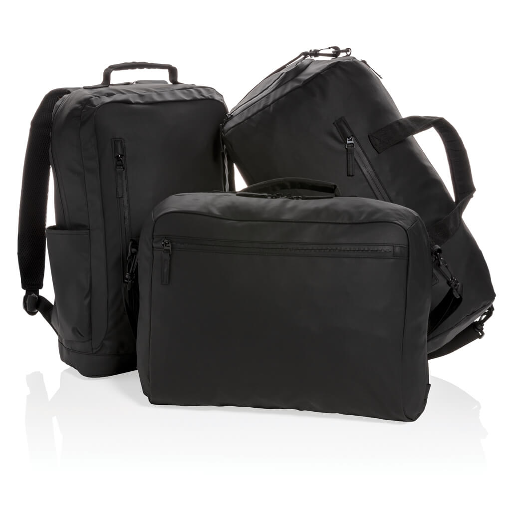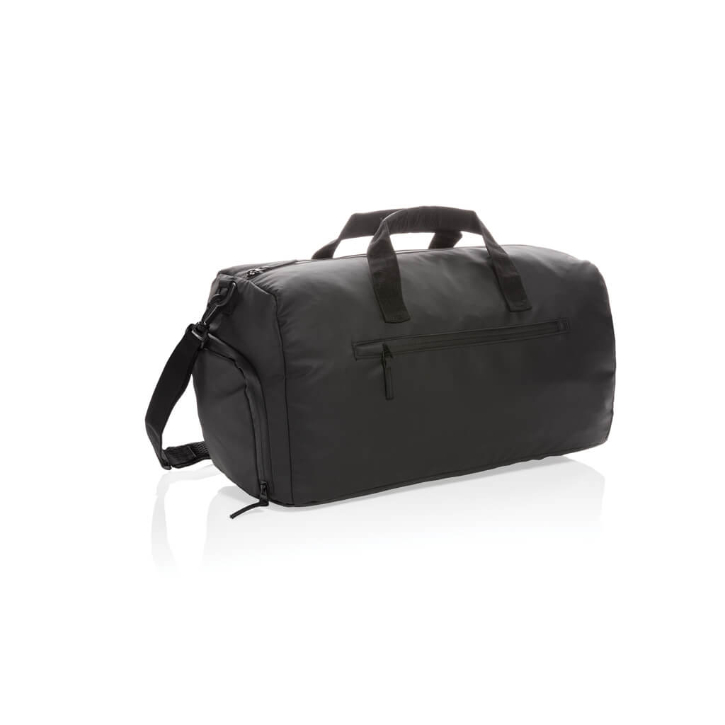 Be effortlessly stylish when carrying this all black PU weekend bag. This bag holds a roomy compartment for all your gear for a short break. Cabin approved size. PVC free.