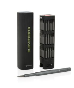 The ultimate high-performance precision bit kit includes essential parts for repairing mobile phones, tablets, PCs and other items. Most electronics life can be extended easily with a simple repair that often can be found online in „how to“ guides. 56 pcs packed in case made with RCS certified recycled aluminum. Total recycled content: 22% based on total item weight. RCS certification ensures a completely certified supply chain of the recycled materials. Set includes screwdriver handle and tweezers. The bits are magnetic and are easy to place and take out from the case.