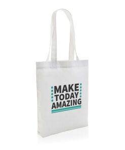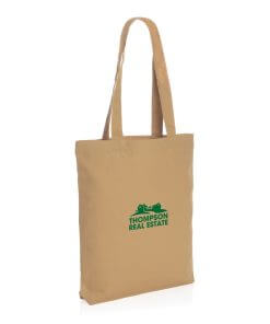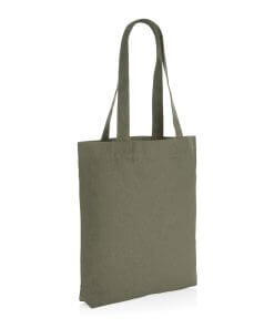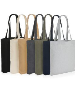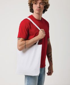 The Impact AWARE™ 285gsm recycled canvas tote bag undyed is the perfect way to carry your essentials wherever you go. This spacious tote provides sufficient space for all your daily needs. The recycled canvas is undyed and used in its raw form, without chemicals from dyeing or bleaching. With AWARE™ tracer that validates the genuine use of recycled materials. Each tote saves 902 litres of water, the natural colour even more: 1030 litre. 2% of proceeds of each Impact product sold will be donated to Water.org. Composition 70% recycled cotton, 30% recycled polyester.