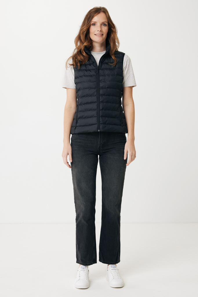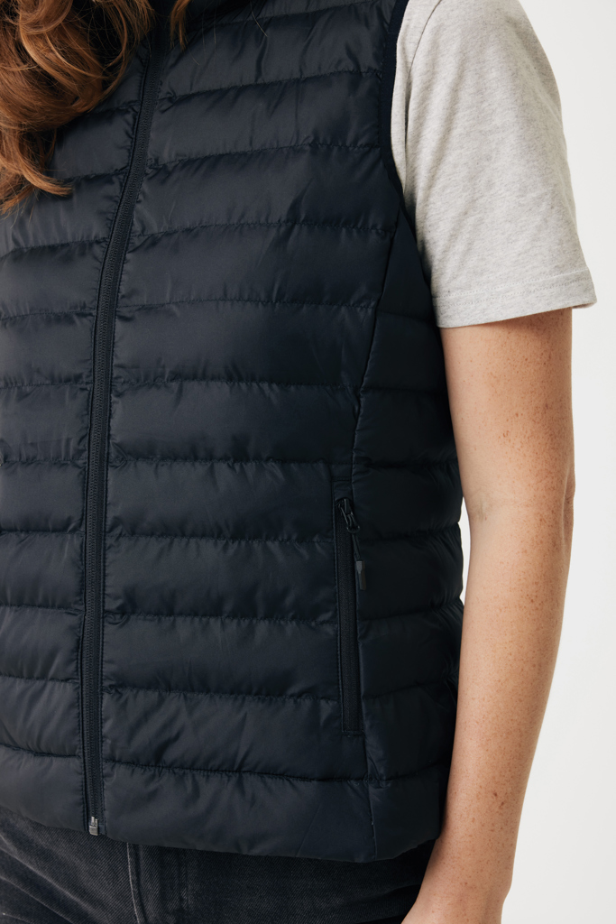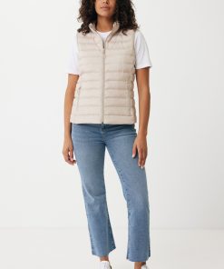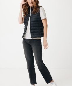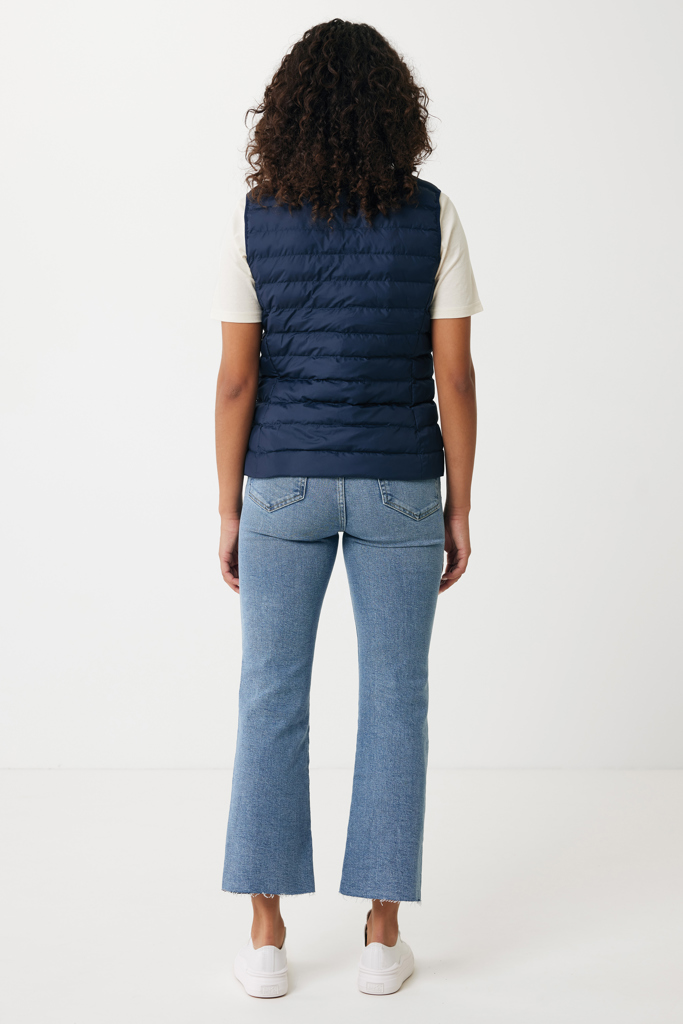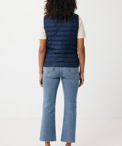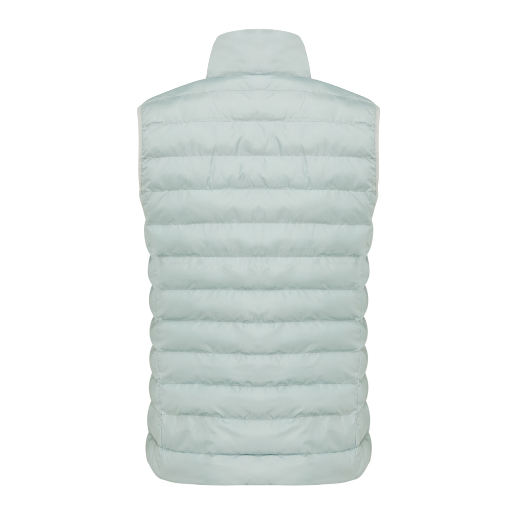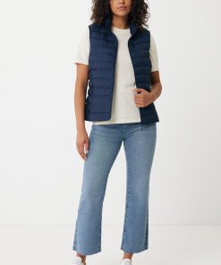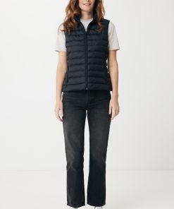 Women’s bodywarmer made from 100% post-consumer recycled polyester. The bodywarmer is fully quilted with 100% recycled polyester pearl filling. It has a reversed zipper at the front and practical zip pockets in the side panel seams. All zippers have extra zip pullers in matching color for a refined look. The armholes have elastic binding and all seams at the inside are clean finished with recycled binding. Fluorine/PFAS free water repellent impregnation. The use of genuine recycled fabric materials and environmental impact claims are guaranteed, by using the AWARE™ disruptive physical tracer and blockchain technology. By scanning the QR code, you will gain access to a dedicated digital passport. 2% of proceeds of each sold product will be donated to Water.org. This product is OEKO-TEX® STANDARD 100 certified. The Meru bodywarmer is also available in men fit.