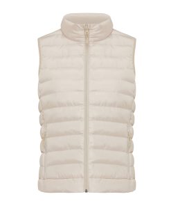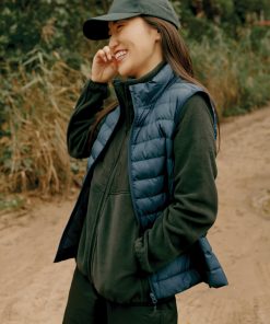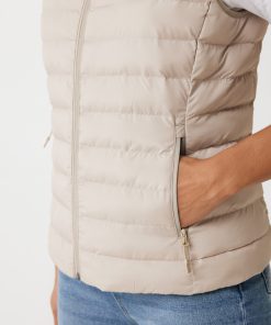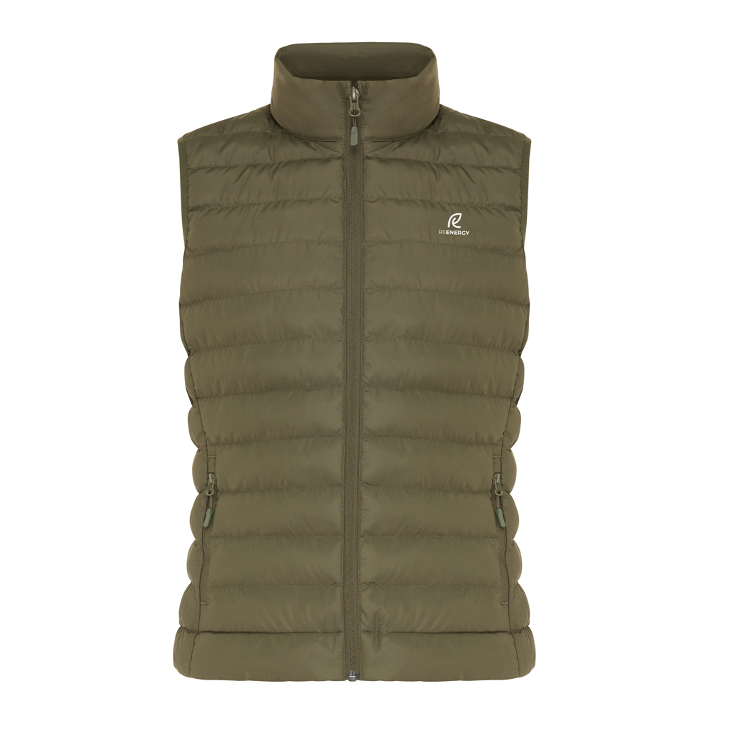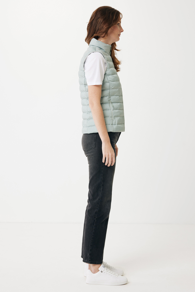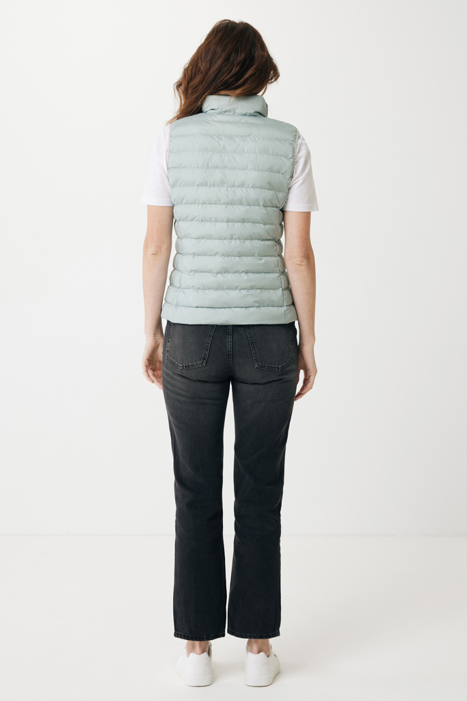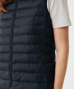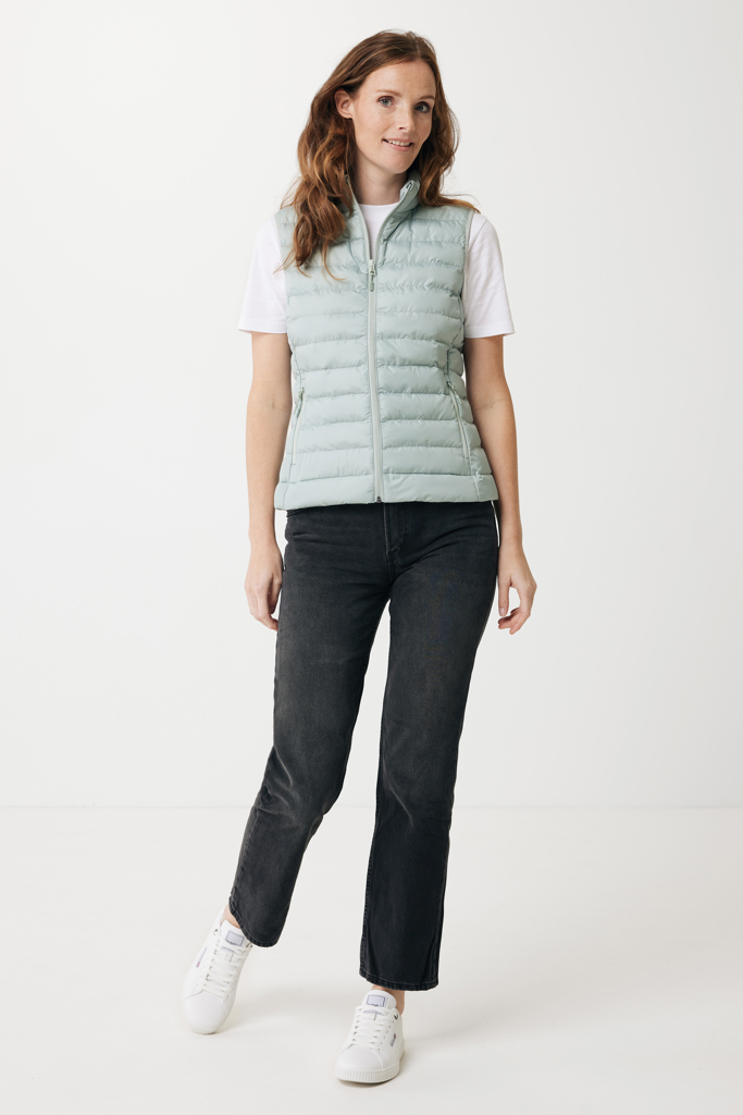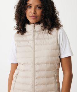 Women’s bodywarmer made from 100% post-consumer recycled polyester. The bodywarmer is fully quilted with 100% recycled polyester pearl filling. It has a reversed zipper at the front and practical zip pockets in the side panel seams. All zippers have extra zip pullers in matching color for a refined look. The armholes have elastic binding and all seams at the inside are clean finished with recycled binding. Fluorine/PFAS free water repellent impregnation. The use of genuine recycled fabric materials and environmental impact claims are guaranteed, by using the AWARE™ disruptive physical tracer and blockchain technology. By scanning the QR code, you will gain access to a dedicated digital passport. 2% of proceeds of each sold product will be donated to Water.org. This product is OEKO-TEX® STANDARD 100 certified. The Meru bodywarmer is also available in men fit.