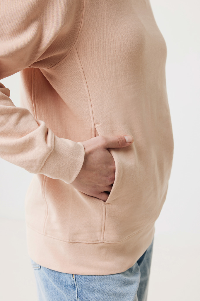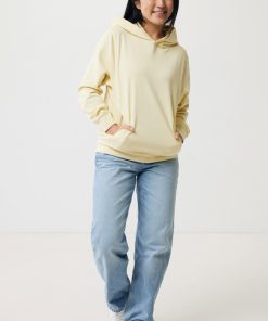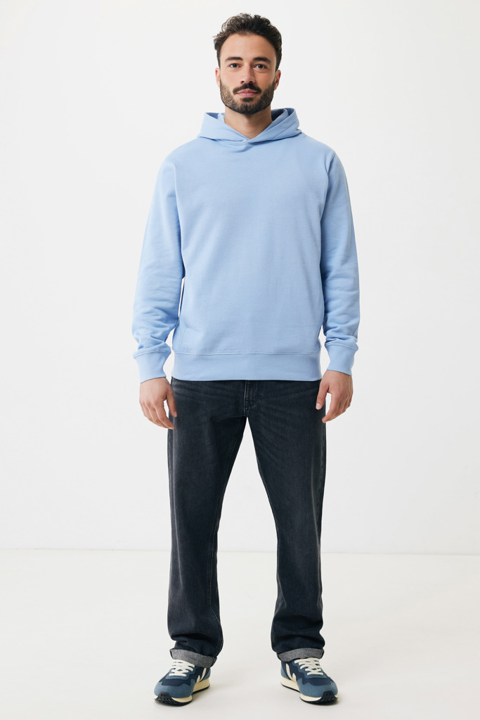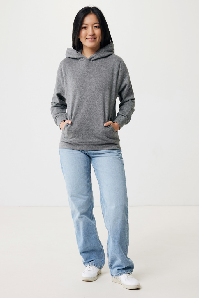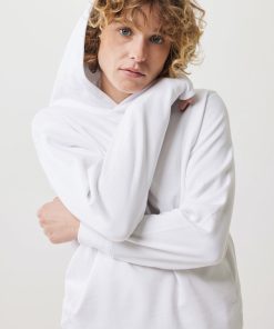 Unisex modern fit hoodie made from 100% cotton, of which 70% is organic and 30% recycled, 280 G/M². The sweater has pockets in the sideseams, a double-layered hood and 1×1 rib at cuffs and bottom hem. The inside is soft-brushed fleece for extra comfort. The use of genuine recycled & organic fabric materials and environmental impact claims are guaranteed, by using the AWARE™ disruptive physical tracer and blockchain technology. By scanning the QR code, you will gain access to a dedicated digital passport of the product. 2% of proceeds of each sold product will be donated to Water.org. This product is OEKO-TEX® STANDARD 100 2303045 Centexbel certified. Due to the nature of recycled yarns, impurities and colour variations may appear.