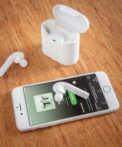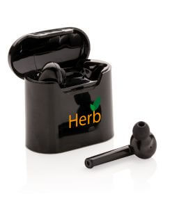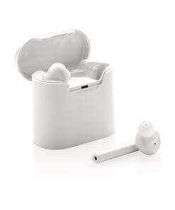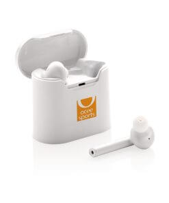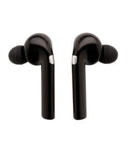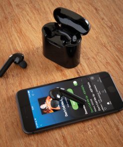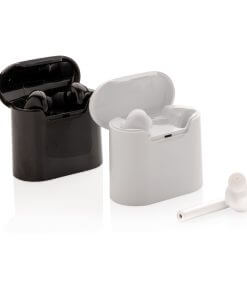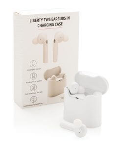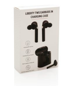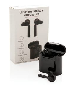 Ultimate freedom with these true wireless earbuds in charging case. The earbuds have a 35 mAh battery and can be re-charged in the 400 mAh charging case within 1 hour. Easy to pair with your mobile device to listen to your favorite music. Play time on medium volume about 2 hours. With BT 5.0 for optimal connection. Operating distance up to 10 metres. with mic. Including 3 size eartips. ABS material.