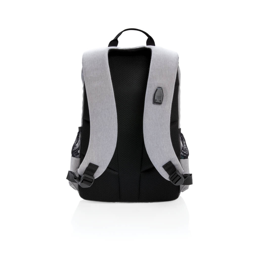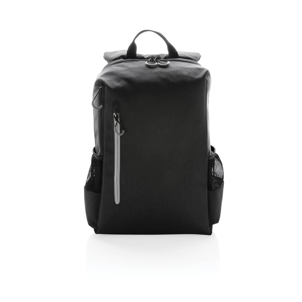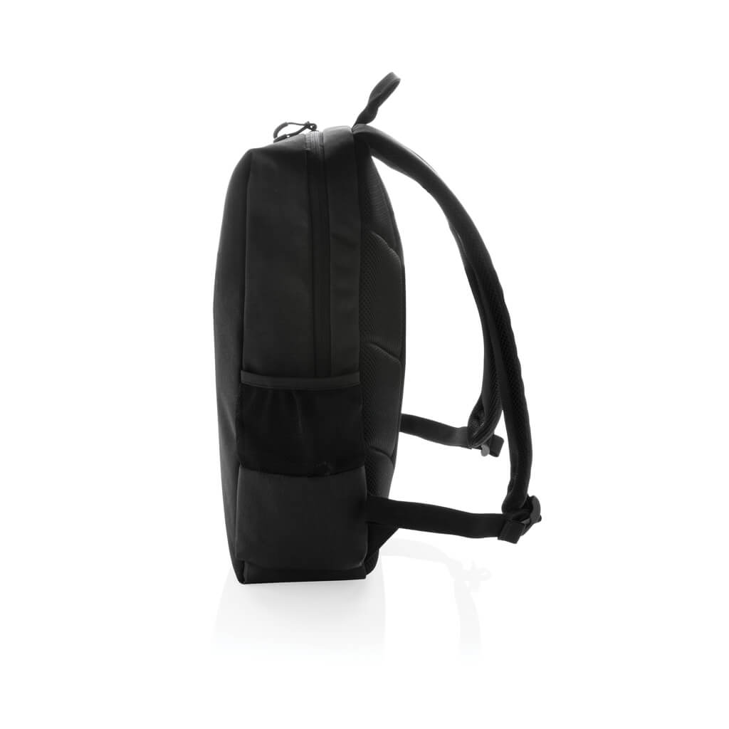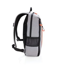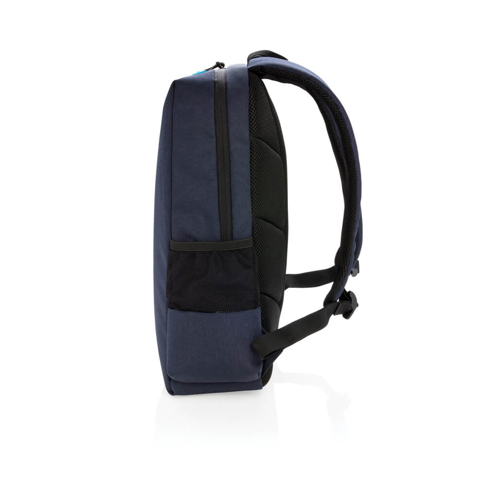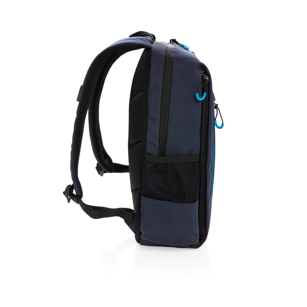 Simple, practical and durable everyday backpack with 2 side pockets for water bottles or your umbrella. Convenient USB output on the strap. Padded 15.6″ compartment for laptop computer as well as several spacious compartments and RFID protected sleeve pockets. Registered design®