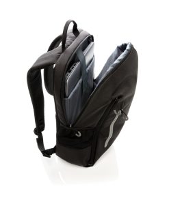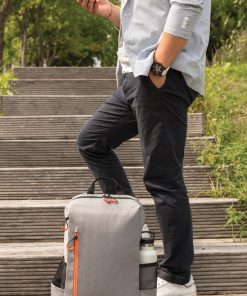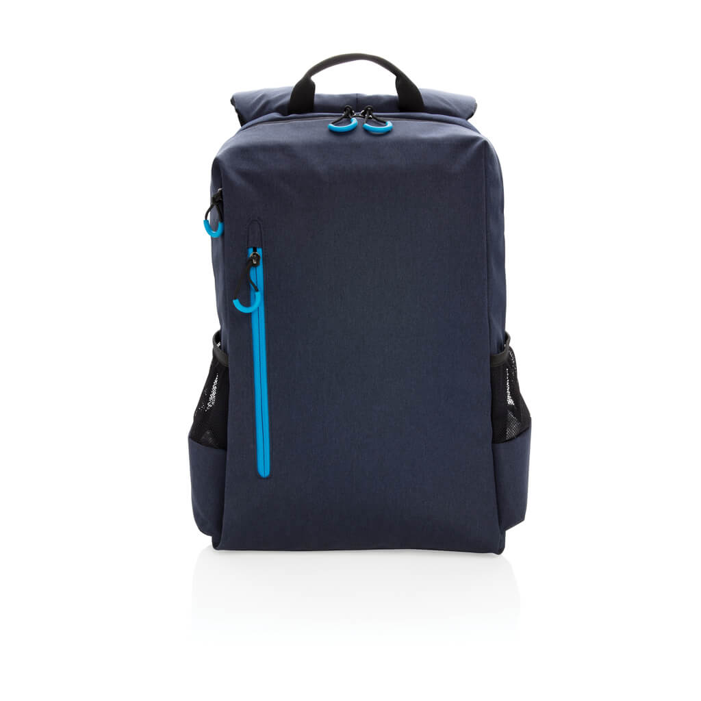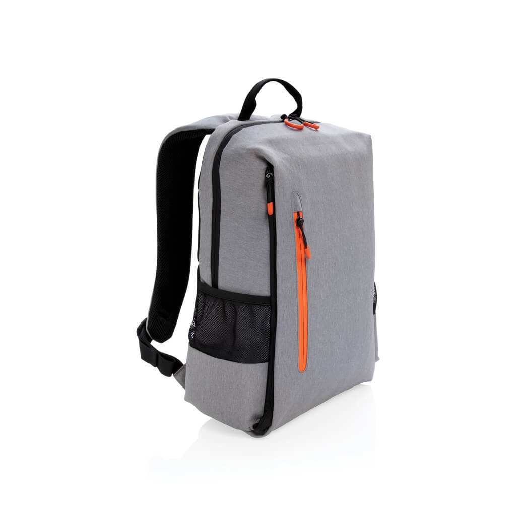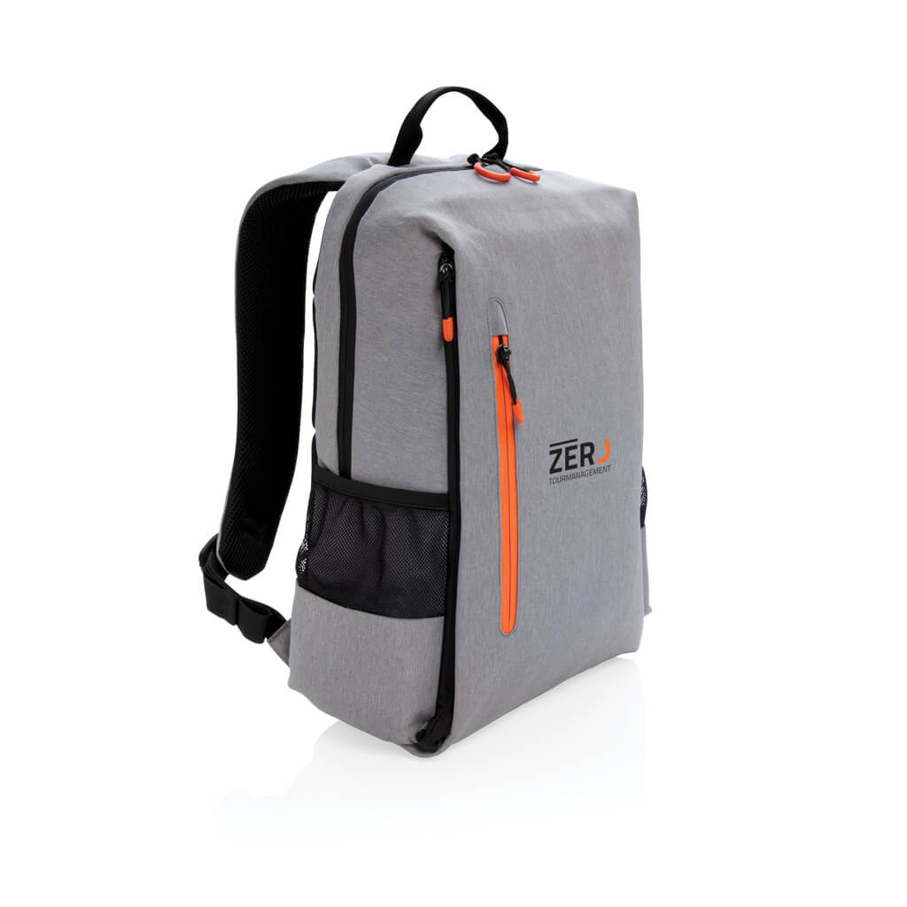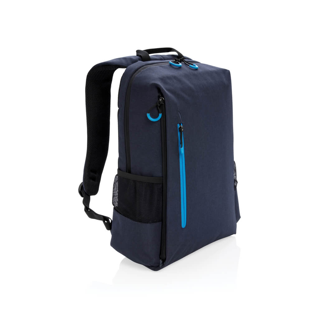 Simple, practical and durable everyday backpack with 2 side pockets for water bottles or your umbrella. Convenient USB output on the strap. Padded 15.6″ compartment for laptop computer as well as several spacious compartments and RFID protected sleeve pockets. Registered design®