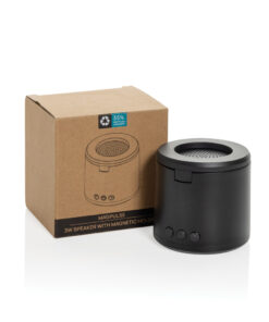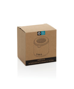 The Magpulse RCS Recycled Plastic 3W Speaker combines clear sound with practical functionality in a compact, stylish design. Equipped with a magnetic holder, it doubles as a convenient phone stand, making it perfect for hands-free calls or streaming your favorite content. The 3W speaker delivers rich audio with an integrated subwoofer, and BT 5.4 ensures seamless auto pairing with devices up to 10 metres away. With a 400mAh rechargeable battery, the speaker provides up to 3 hours of playtime at 50% volume and recharges in just 1.5 hours via the included USB-C cable. The case is made from RCS certified recycled ABS plastic. RCS (Recycled Claim Standard) is a standard to verify the recycled content of a product throughout the whole supply chain. Total recycled content: 35 % based on total item weight. This speaker is PVC-free and packaged in an FSC-certified kraft box. Its lightweight, portable design and magnetic functionality make it an excellent companion for work, travel, or leisure.