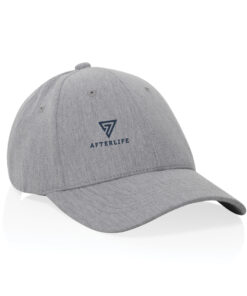 Milo AWARE™ heather 6 panel cap. 70% recycled cotton & 30% recycled polyester. Cap comes with metal buckle closure.