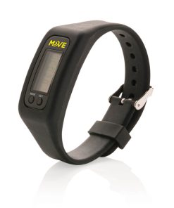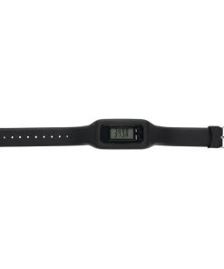 Pedometer bracelet with ABS pedometer unit and acrylic screen. The armband is made out of comfortable silicone material. The bracelet is adjustable to fit various wrist sizes and therefore suitable for all users. The bracelet counts steps, calories burned and distance travelled. Includes batteries for immediate use. Battery life on normal usage about 1 year.