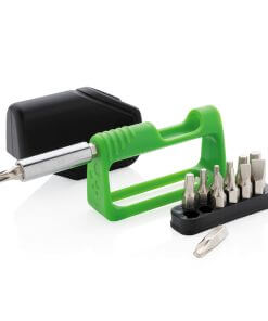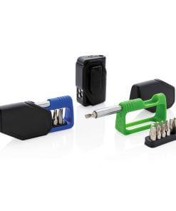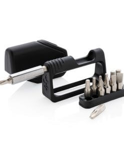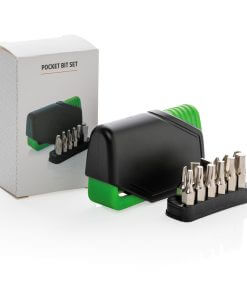 Easy to carry bit set with 12 bits and one 2” extender made from stainless steel. ABS casing with integrated holder for the bits. Bits included: 3 x TORX driver (10,15,25) 3 x Hex driver (3mm, 4mm, 5mm) , 3 x Philips drivers ( 1.8mm, #0 #2) 3 x flat drivers ( 1.8 mm, #3 #5) With belt clip to attach to belt or pocket