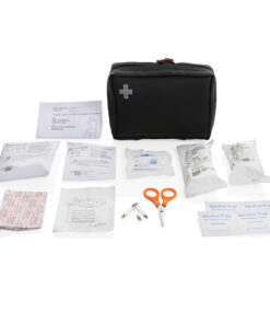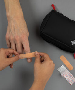Luxury first aid kit, featuring a water-repellent nubuck-PU material that is both stylish and practical. The material is easy to clean and repels water, making it perfect for use while on the go 1pc PBT bandage, 1pc PBT and compress bandage, 1pc triangle bandage, 1pc safe kiss, 1 pair of gloves, 1pc tape, 3pcs pin, 1pc scissor, 10pcs plasters and 4pcs alcohol pads; ; All content according to Medical Device Directives: 93/42/EEC and EU (2017/745), EN ISO 13485:2016; All content (except for pins and scissor) packed in paper bag marked with all mandatory markings needed for EU, like “Expiration date, CE, LOT number. Total recycled content: 24 % based on total item weight. RCS certification ensures a completely certified supply chain of the recycled materials