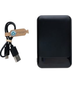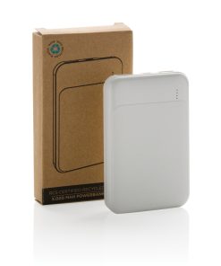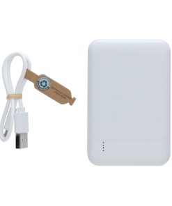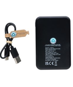 5.000 mAh pocket powerbank made with RCS (Recycled Claim Standard) certified recycled ABS material with soft touch finish and FSC® certified bamboo. Total recycled content: 20 % based on total item weight. RCS certification ensures a completely certified supply chain of the recycled materials. When fully charged it will provide you with enough energy to re-charge your mobile phone up to three times. The powerbank contains a long-lasting grade A 5.000 mAh high density lithium polymer battery. The power indicators will indicate the remaining energy level so you always know when to re-charge. Type-C input 5V/2A Micro USB Input 5V/2A. Output 5V/2A. Packed in FSC® mix packaging. Including RCS certified recycled TPE charging cable
