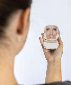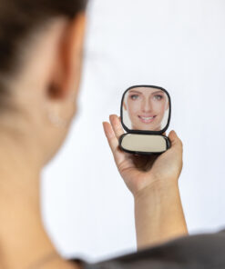 Reflecta is a compact and stylish pocket mirror, designed to provide the perfect reflection for your beauty routine. Featuring two mirrors—one standard and one enlarging mirror—Reflecta allows for detailed precision and flawless application, no matter where you are. Ideal for on-the-go use, this high-quality mirror offers convenience and portability without the need for batteries or charging. Whether you’re applying makeup or making quick touch-ups, Reflecta provides clarity and convenience in a sleek, compact design. Made out of RCS certified recycled materials, including recycled plastic. RCS (Recycled Claim Standard) is a standard to verify the recycled content of a product throughout the whole supply chain. Total recycled content: 46% based on total item weight. PVC free.