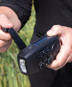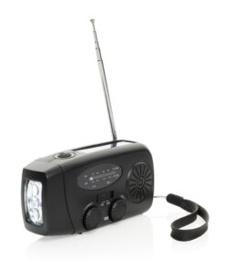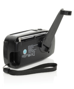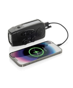 Stay prepared for any situation with RescueWave, a versatile emergency radio designed to keep you connected and powered. Featuring AM/FM radio, solar panel, an integrated 1W torch, USB output and USB C input, this compact device ensures you’re equipped for unexpected moments. With a built-in 1800mAh battery, RescueWave can charge your phone, providing crucial power when you need it most. The hand crank mechanism offers dependable functionality—just 1 minute of cranking supports 5 minutes of radio or 30 minutes of torchlight, making it an essential tool for emergencies. When fully charged the radio will operate up to 15 hours of radio broadcast or 8 hours of torch light. Made out of RCS certified recycled materials, including recycled ABS plastic. RCS (Recycled Claim Standard) is a standard to verify the recycled content of a product throughout the whole supply chain. Total recycled content: 38% based on total item weight. Item and accessories are PVC-free and packed in FSC® packaging.