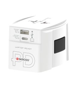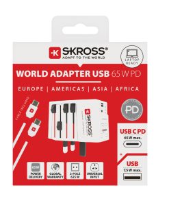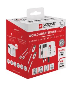 65W travel adapter with 1 x USB C port and 1 x USB port to enable simultaneous charging of your smartphone and tablet and even your laptop, while the adapter can be used with an unearthed device at the same time. Appealing compact shape. Charge your laptop at full speed. Including 65W type C charging cable.