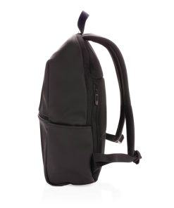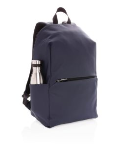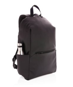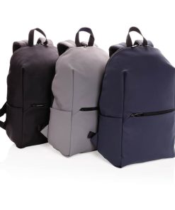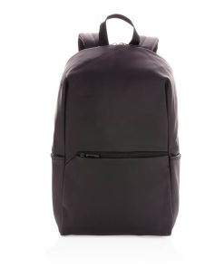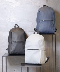 This minimalist, modern backpack made of smooth PU is fully lined and features an inner 15.6 inch laptop compartment, a spacious main compartment and 2 inner pockets and 2 pen loops. Mesh padded back and adjustable straps. Exterior 100% PU. Interior 100% 210D polyester. PVC free.