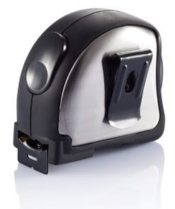 Stainless steel case with belt clip.