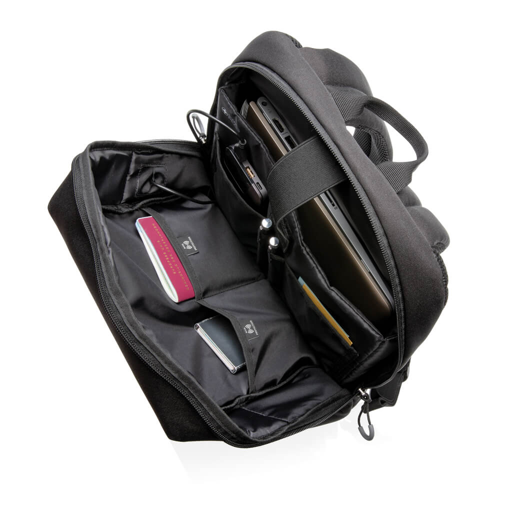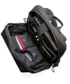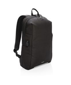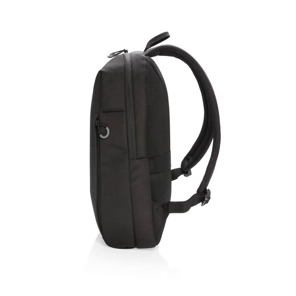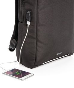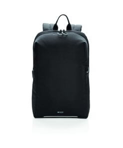 This stylish carry-on laptop backpack is intended for business and leisure trips. It’s designed with a padded 15.6″ laptop compartment to protect your device. Including trolley strap and USB A output. Side quick access pocket with RFID protection. Front with reflective safety strip. PVC free. With AWARE™ tracer that validates the genuine use of recycled materials. Each bag saves 13.1 litres of water on average and has reused 22 PET bottles. 2% of proceeds of each Aware™ product sold will be donated to Water.org.