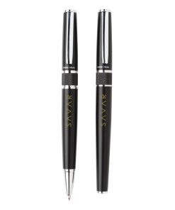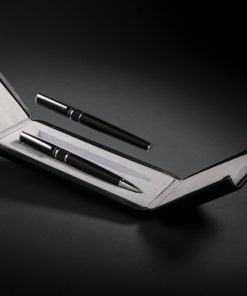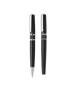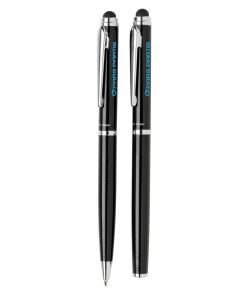 Stylus ballpoint pen and stylus rollerball gift set. Exclusive design with beautiful lined barrel pattern and a dedicated place for printing your decoration. Incl. Swiss Peak tube giftbox.