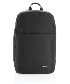 This unique Swiss Peak laptop backpack with UV-C sterilising pocket features a minimalistic design and has an integrated UV-C sterilising external front pocket, killing up to 99,9% of the bacteria on items placed inside the pouch. Perfect for sanitising your keys and phone for example while on the go in 3 minutes. The three UV-C LED lights inside are non-toxic and mercury free. The design will also ensure that the UV-C LED light will switch off automatically when the sterilising pocket is opened via the zipper so the user will not be exposed to the UV-C light. The backpack has a laptop compartment in the main pocket which fits a 15.6 inch laptop, 2 open pockets and 2 pen loops. Mesh padded back and straps for comfort. Including a micro USB cable which you can use to connect your powerbank with to charge the UV-C pouch. Exterior 600D and 900D PU coated polyester. Interiour 210D polyester. Compliant with EN62471. PVC free.
