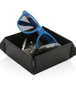 Foldable and magnetic storage box made with RCS certified recycled PU. Total recycled content: 21% based on total item weight. RCS certification ensures a completely certified supply chain of the recycled materials. The storage box comes flat in the packaging and can easily be folded into a storage box with the integrated magnets. Perfect for your desk or your bedside table. Packed in FSC® mix packaging.