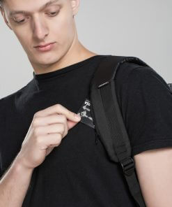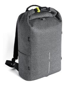 The Urban anti-theft cut-proof backpack is your safest travel companion yet. It’s made of high quality anti-cut fabric and the main compartment can be completely locked with the steel reinforced combination lock. This function can also be used to lock the bag around a fixed object. There are hidden pockets on the back and in the shoulder strap for cards, with RFID protection. The bag comes with a side water bottle pocket and detachable elastic net for your sports equipment. While on the inside there are padded compartments for a 15.6” laptop, tablet up to 12.9” and mesh pockets for your other belongings. Registered design®