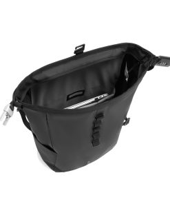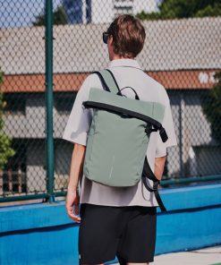 The new Urban anti-theft backpack stands as the ideal travel companion, ensuring security and convenience. By rolling up the main compartment and securing it with the reinforced combination lock, the backpack offers complete closure, which can also be used to lock the bag around a fixed object. Hidden pockets on the back. The bag is equipped with a side water bottle pocket. Internally, padded compartments cater to a 16” laptop and mesh pockets provide organisation for your essentials. Crafted with Aware™ traceable recycled polyester and finished with a soft touch water resistant PU coating. 11% recycled content. Registered design®