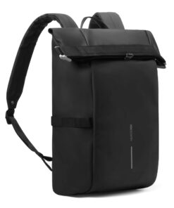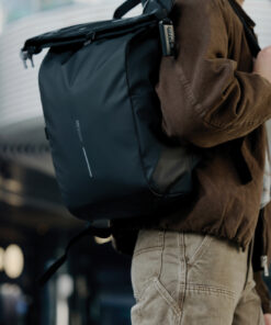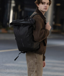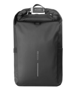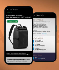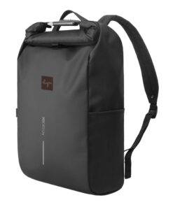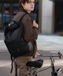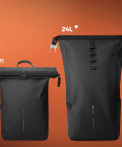 Urban Water Resistant Bike backpack stands as the ideal travel companion, ensuring security and convenience. By rolling up the main compartment and securing it with the reinforced combination lock, the backpack offers complete closure, which can also be used to lock the bag around a fixed object. The backpack easily attaches to your bike frame. Inside, padded compartments accommodate a 16” laptop, while mesh pockets keep your essentials organised. The minimalist exterior is crafted from high-quality, water-resistant, and durable PU material, while the lining is crafted with AWARE™, the use of genuine recycled fabric is guaranteed. 32% recycled content. Registered design®
